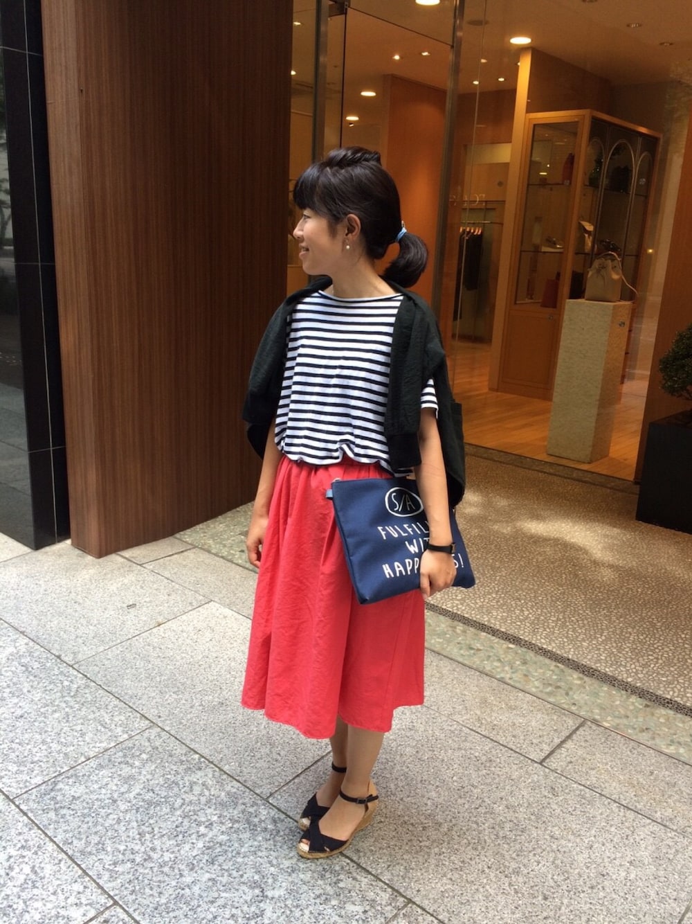 最近、いい感じの背景があったらコーデ写真をとるクセがつきましたw UNIQLOのボーダーカットソーは、先日500円でゲット✌🏻️