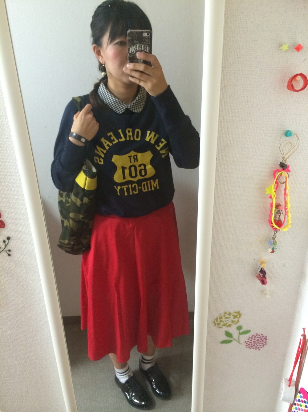 さむーい!! 念願のエナメルシューズGETできて嬉しいコーデ。いっつもスニーカーばっかやけどやっぱりちょっと足元が上品になる♪ シャツ&スウェットは定番ですき♡ さて今からパン教室!