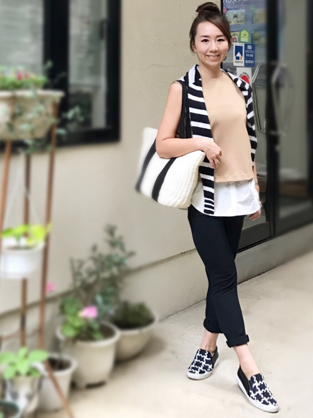 オトナ夏カジュアル ブラック×ベージュ×ホワイト 3色コーデ