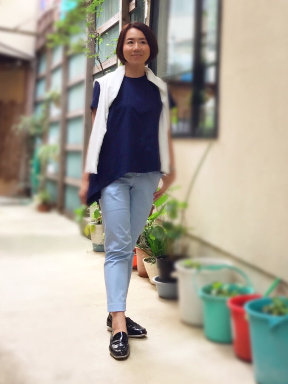 気がついたらクローゼットの中は ユニクロだらけwww 体型カバーもできるアシンメトリーなデザインが 技ありのTシャツはなんと!500円!! JWANDERSONとのコラボアイテム❤︎ オンラインでは売り切れで実店舗でたまたま見つ けたアイテム♪ ボトムスも990円でまさに超プチプラコーデ。 寒色系のグラデーションで爽やかにまとめて みました♪