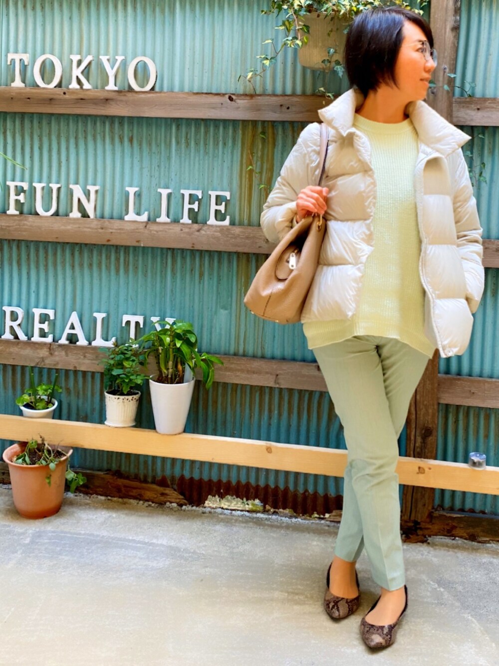 【ワントーンコーデ】グリーンが好き♡ ペパーミントカラーで寒い日も春を感じて♡♡ #淡色女子 #ペパーミント #ezyアンクルパンツ #パイソン柄 #春コーデ #お洒落さんと繋がりたい #ワントーンコーデ #パンツコーデ #ニット #コットンブレンドオーバーサイズセーター