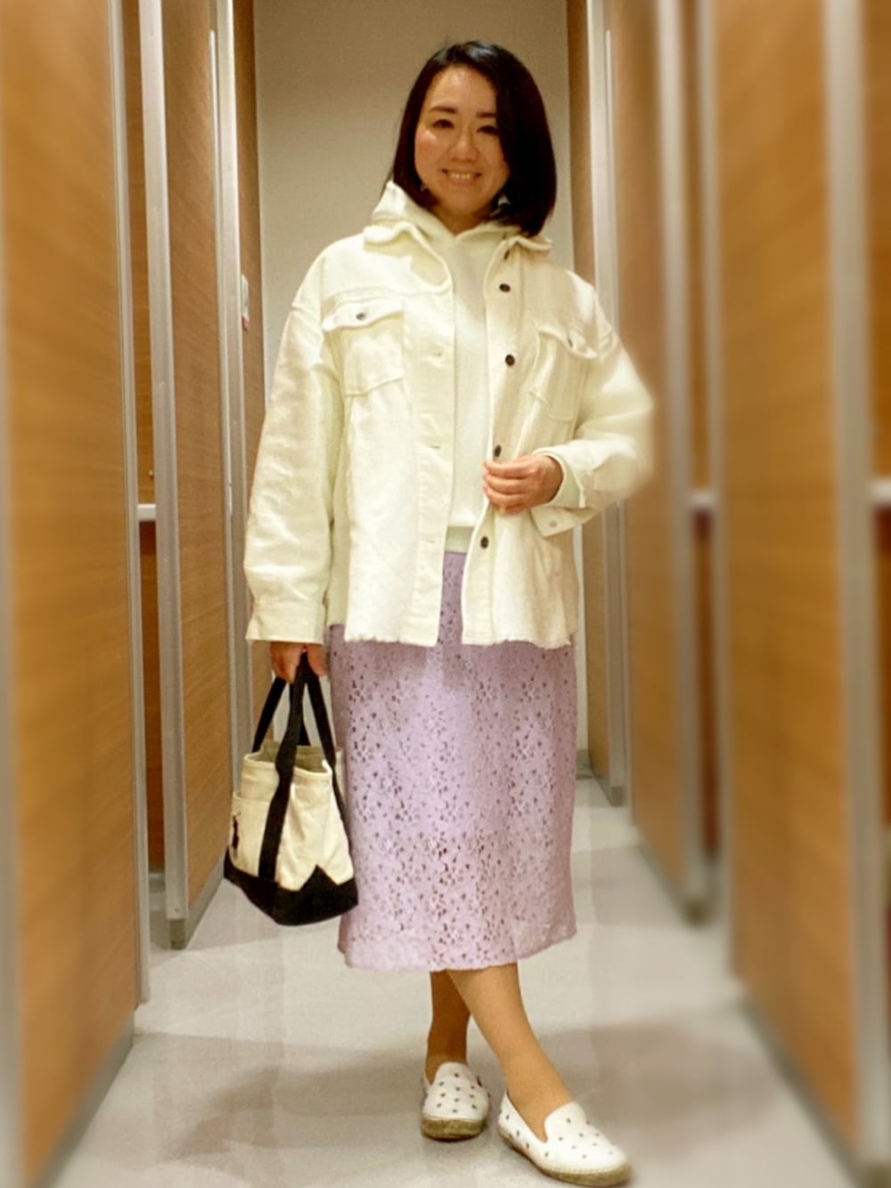 春はコーデュロイシャツが、 羽織に大活躍♡ パーカー×レースで、春のカジュアルフェミニンスタイル♡ ウルトラドライストレッチパーカー ユニクロ コーデュロイジャケット ZARA レーススカート gu エスパドリーユ loveless トート ラルフローレン オーバーサイズのジャケットで、 華奢見せコーデ。