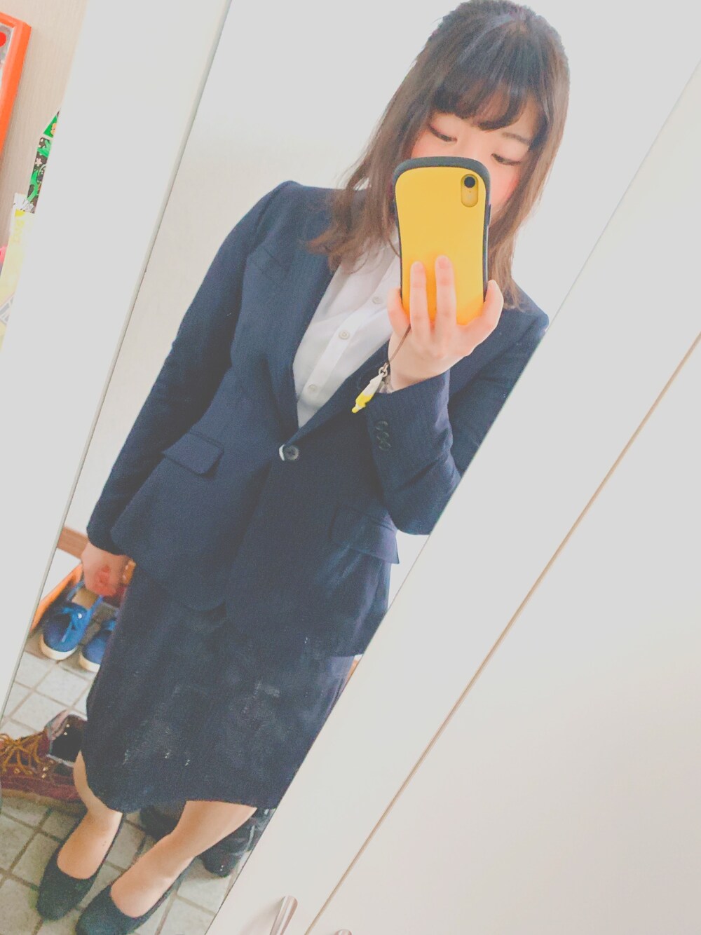 入社式用のスーツ。2年越しに入社式に出席出来ます。