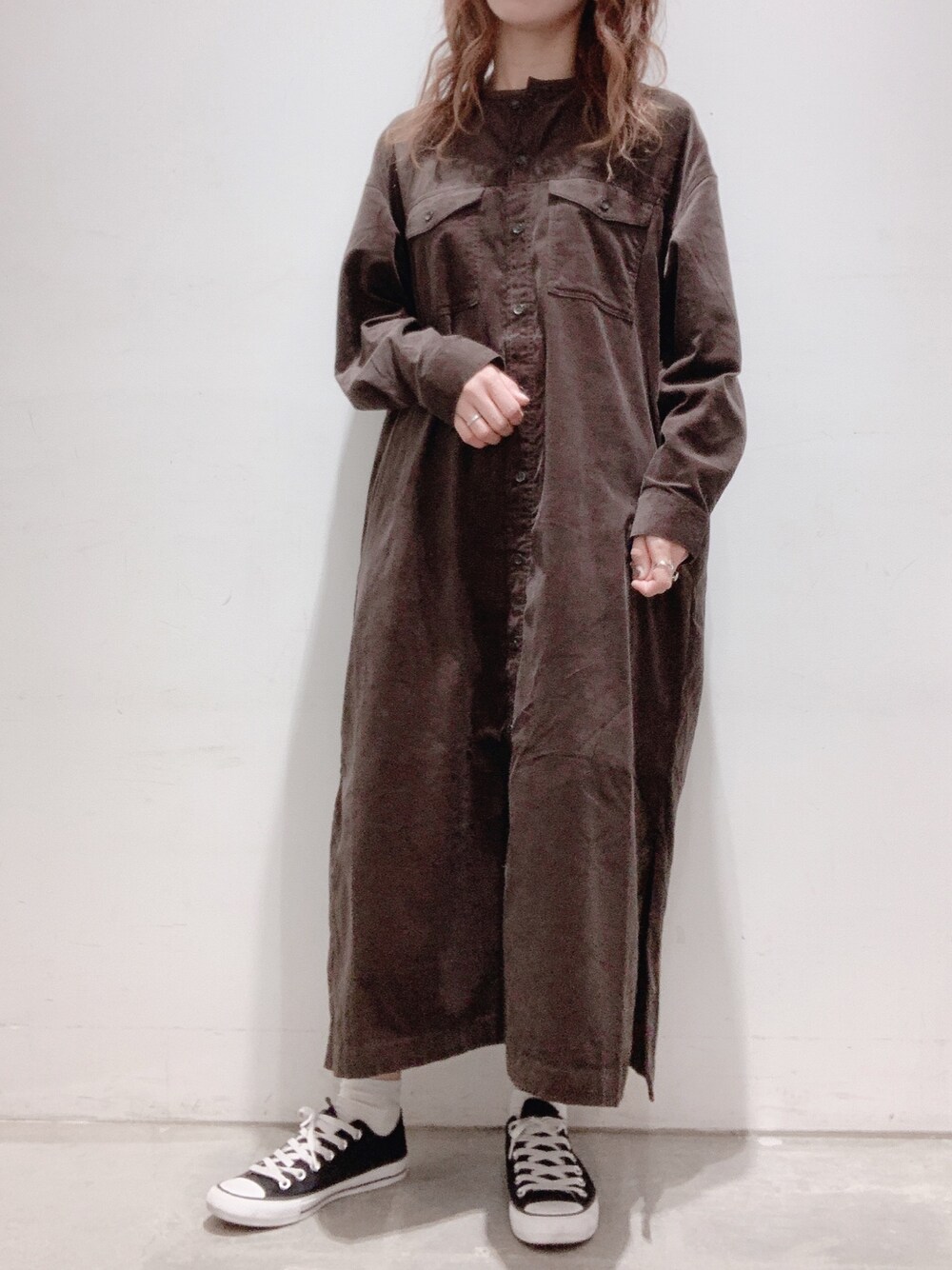 REI(AMERICAN HOLIC)のワンピース「ノーカラーコールテンシャツワンピース *●」を使ったコーディネート