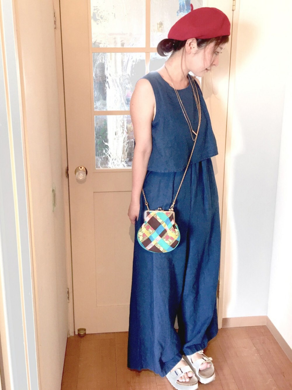 なるラムのサロペット/オーバーオール「KBF インディゴワイドコンビネゾン」を使ったコーディネート