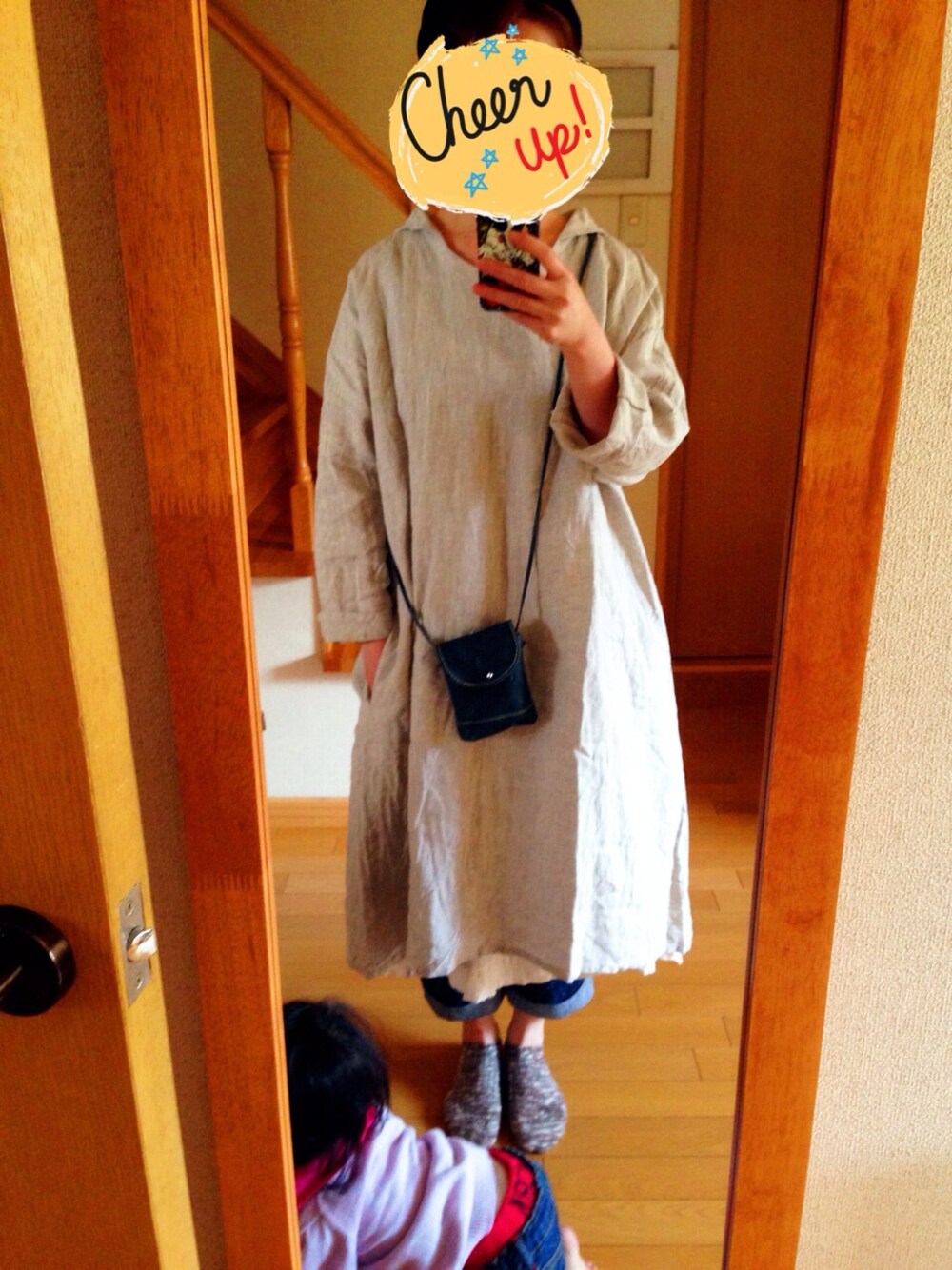 cheer spring セーラー襟リネンワンピ 下に重ねてるのはcheerのギャザーキャミワンピ 娘カットイン!