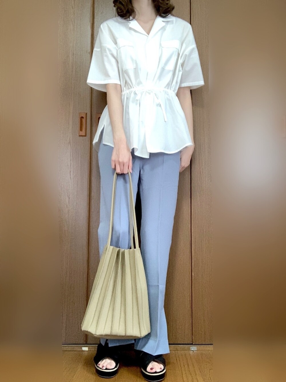 ちぃ*のトートバッグ「フェイクレザープリーツトートバッグ」を使ったコーディネート