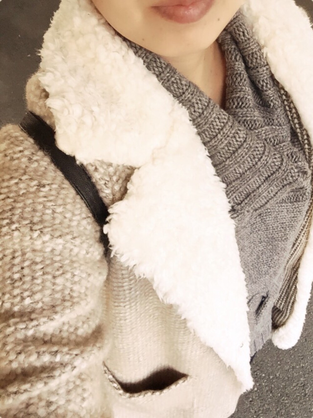 あったかモコモコ。 寒くなってきたから今日初おろし。 ポケットが大きくて使いやすい。 サイズも大きいから中に厚着してもいい感じになりそう(╹◡╹)