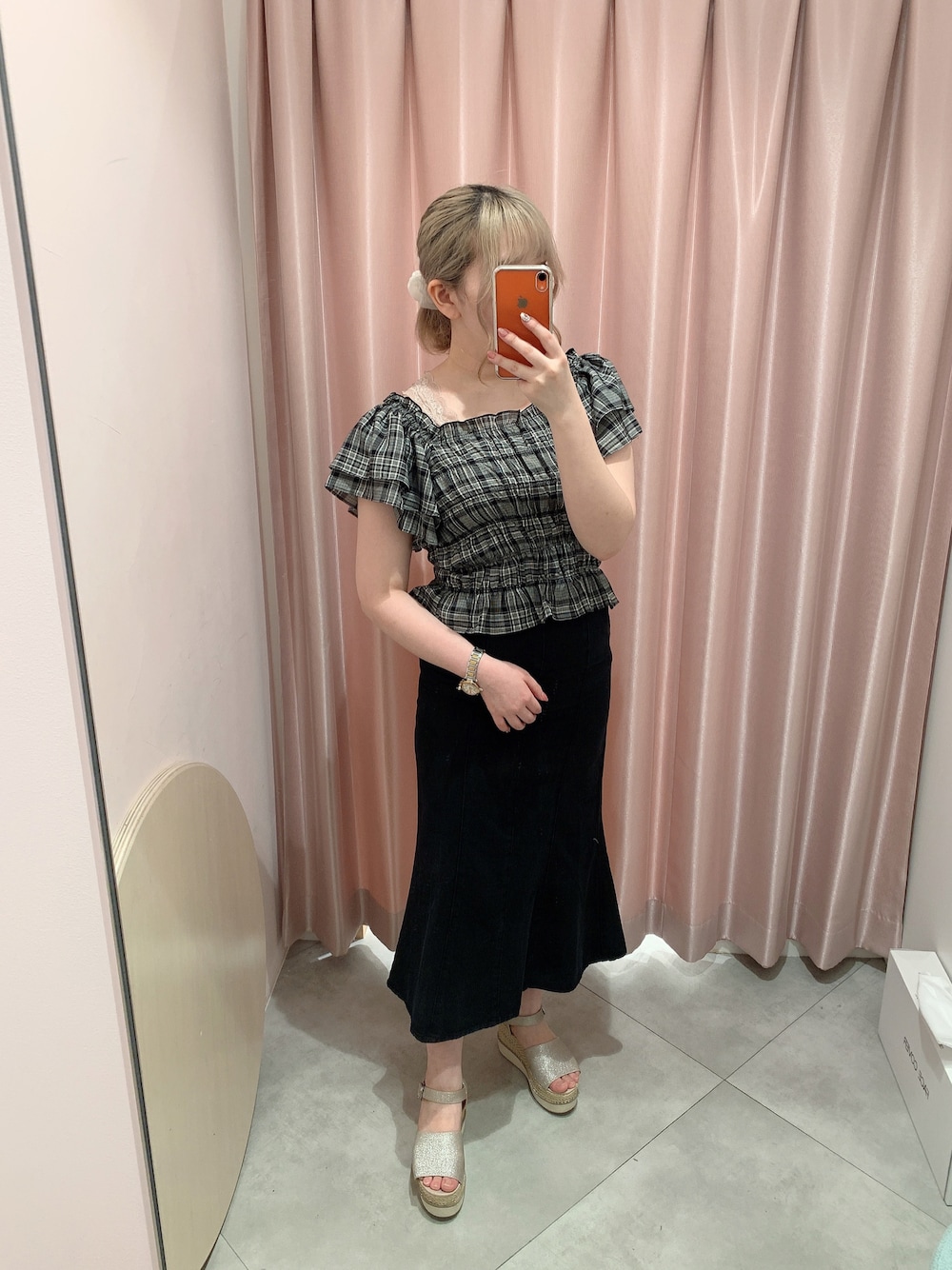 りん(one after another NICE CLAUP)のシャツ/ブラウス「シャーリングフレアブラウス」を使ったコーディネート