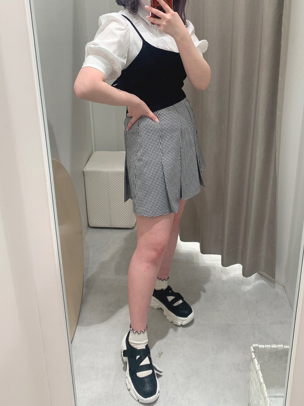 韓国女子スタイル🖤🤍 ギンガムチェックをプラスで可愛らしい感じに🐼