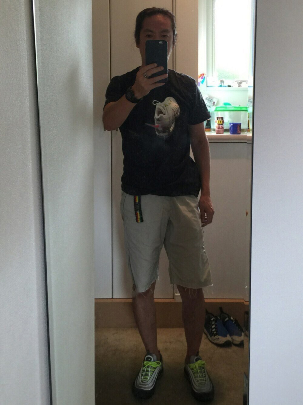 Tシャツにはairmax95のプリントが入っていますが、履いてるスニーカーはairmax97という完璧なおっさんスタイルです。