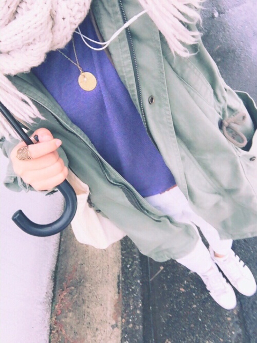 りた。のマフラー「□BEAMS / ケーブル マフラー」を使ったコーディネート