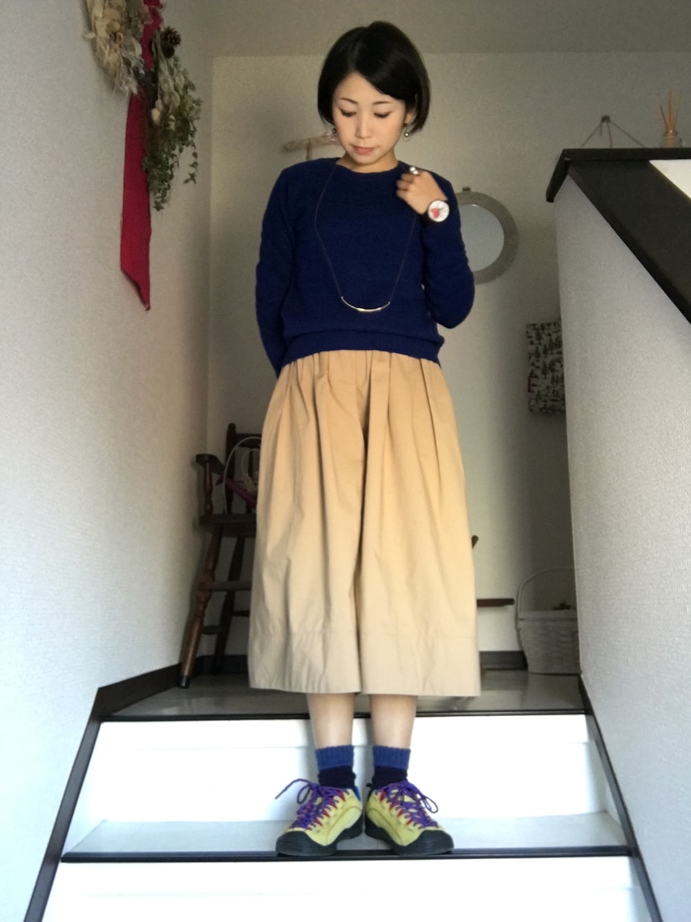 あったかい日は短め靴下で。 UNIQLOの週末セールで1600円だったニットは色も綺麗でなかなかのお気に入り。