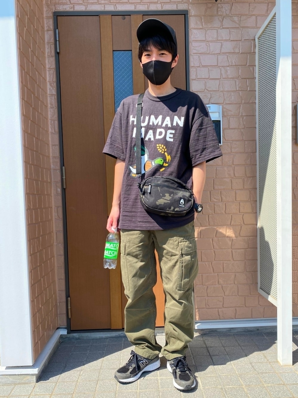 ワイスリーのキャップは 友人からもらって 気に入って愛用してます シンプルなデザイン、素材感など はなまるです ニクソンのショルダーバッグは ドンキホーテの情熱価格で叩き売り 1000円ちょっとの割に優秀なり ヒューマンメイドのTシャツと グラミチのカーゴパンツは 色あせた風合いがマッチ 右手にもマッチ