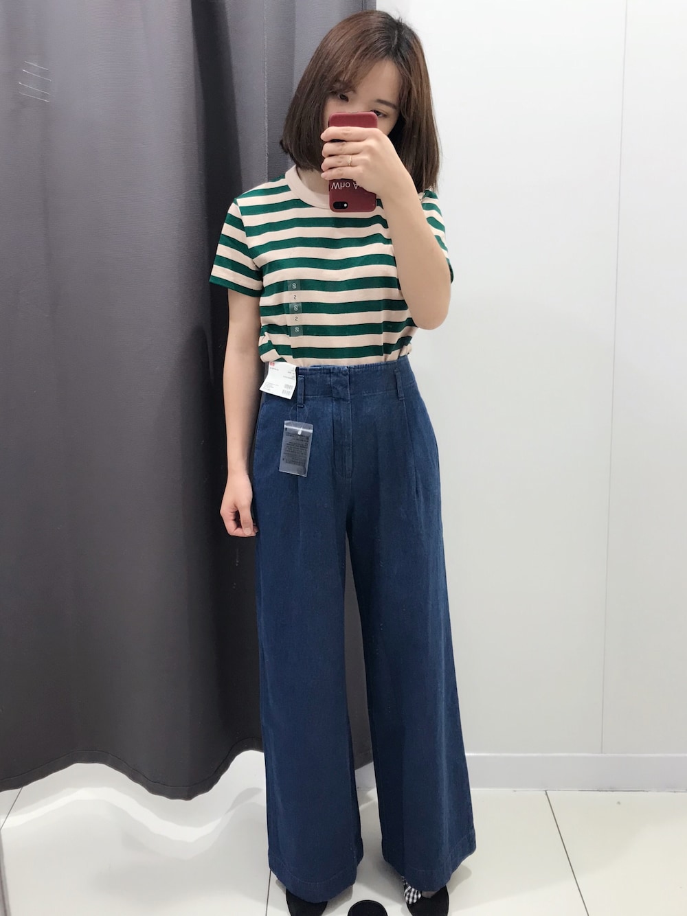 高腰阔腿裤+优衣库u系列草绿色上衣,复古又显高!