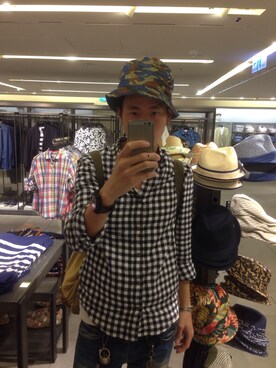 「top shopのアイテム(シャツ/ブラウス、ブラック系)」を使った、fang Chen hungさん(メンズ・179cm)の春コーディネート