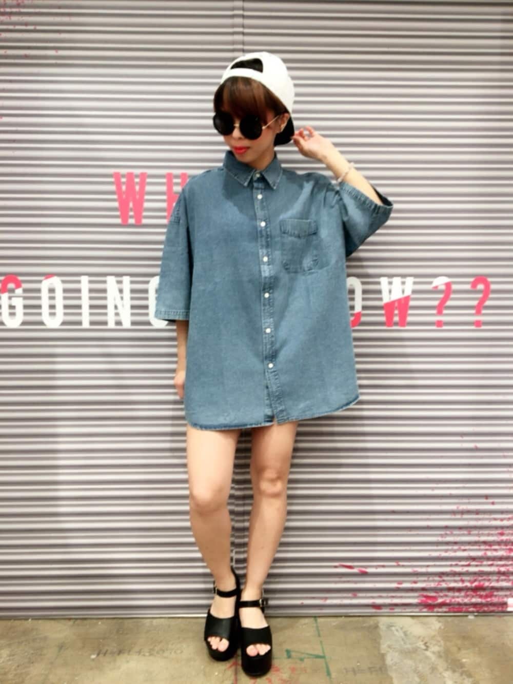 🌞🌴✨夏のシンプルコーデ🌺🌴🏖 デニムシャツは生地が薄くて着やすいんだけど メンズサイズでオーバーだから可愛いの! 厚底サンダルで脚長効果でソックスは履かずに夏感をよりだす( ᵒ̴̶̷᷄꒳ᵒ̴̶̷᷅ ) 色は黒で締めて厚底で可愛らしいけどキャップでスポーティーさをよりだす!
