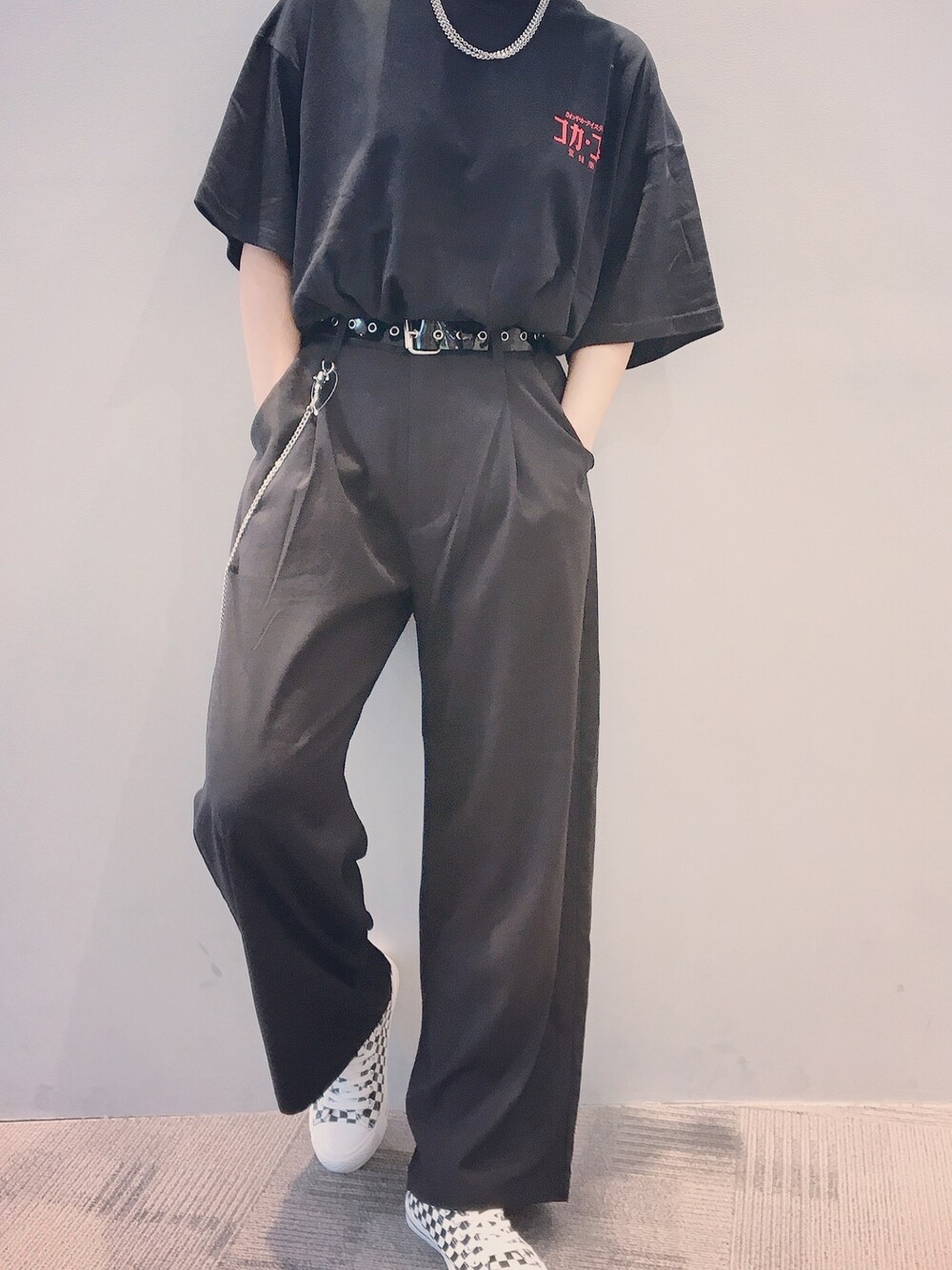 コカ・コーラのTシャツ赤ロゴですごく可愛いんだけど、バックロゴが色んな国のコカ・コーラって言葉が書いてあってめちゃくちゃいいんよ🥺💭 ボトムスはメンズなんだけど、チェーン付きでシルエットもかっこいいからすき¨̮♡