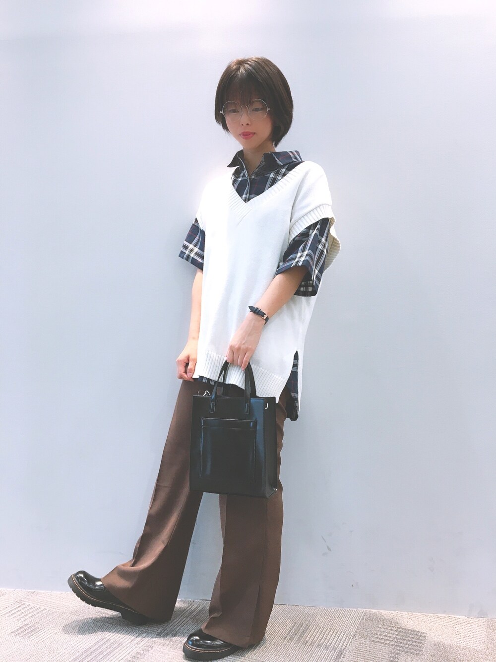 プレッピーコーデで、ニットを使って可愛らしさプラスに仕上げました( ˙꒳˙ ) ゆったりとしたにっとべすとはチェックシャツと合わせればシンプルすぎないから🙆♀️○ 頭良さそうにみえる??笑