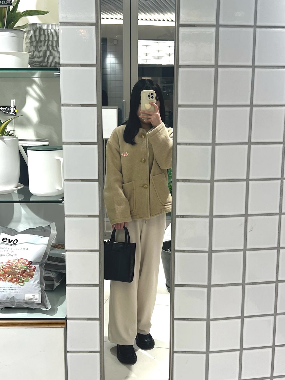 コムギのノーカラージャケット「DANTON/ダントン ウールカラーレスジャケット COLLARLESS JACKET(ウィメンズ)DT-A0013 WLP」を使ったコーディネート
