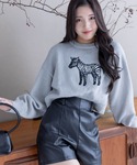 コムギのニット/セーター「アニマルワッペンニットトップス」を使ったコーディネート