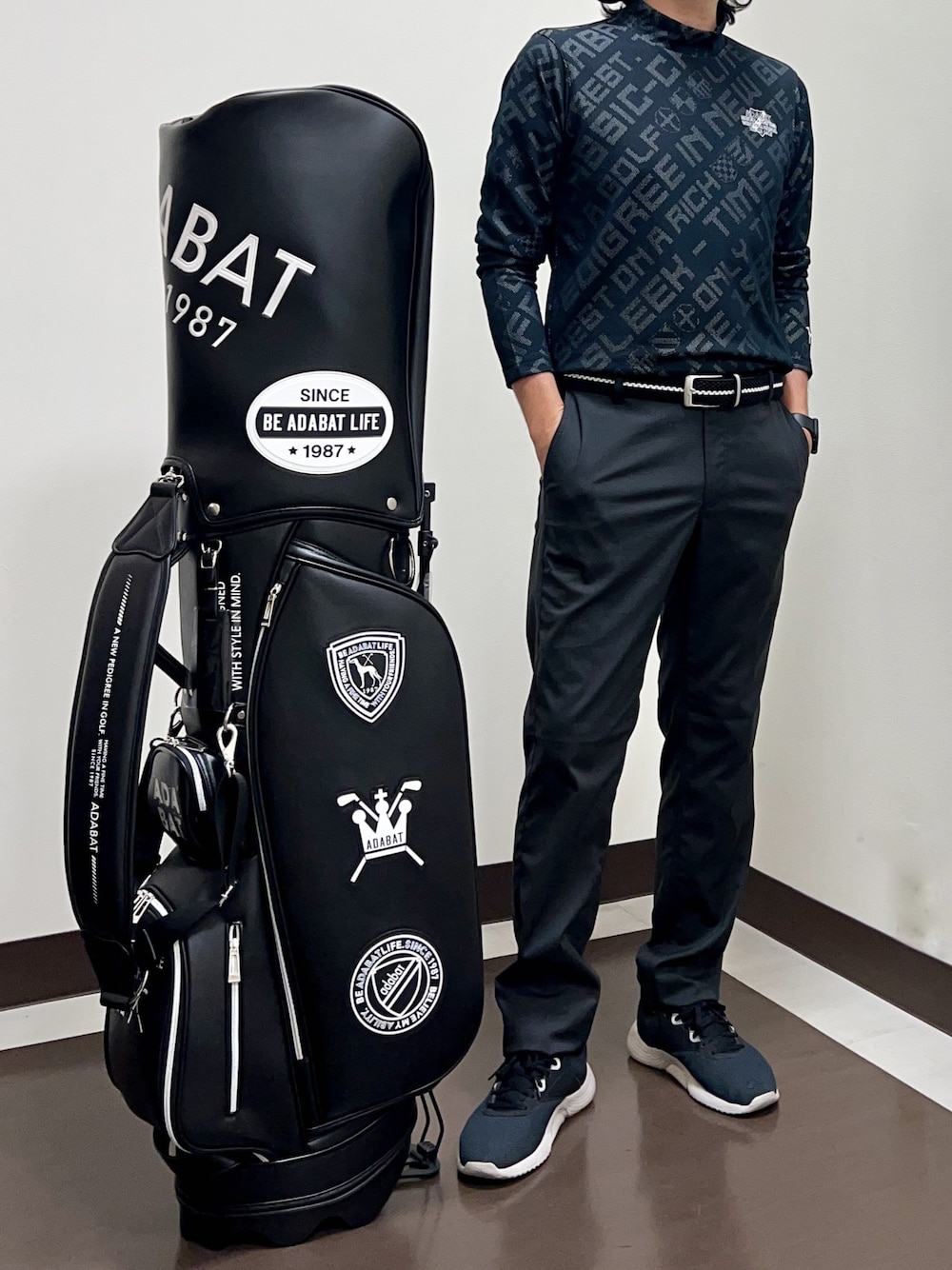 長袖モックネックプルオーバーは全体にメッセージロゴ柄がデザインされており、一枚着はもちろんベスト等のインナーとしてもオススメ!