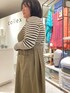 エプロンですが、 ワンピース、お洋服のようなデザインが 素敵です! 高山都さんとコラボで作成していただいたもの♡ カーキとブラックはハシゴレースの Vネックでかわいいのです!