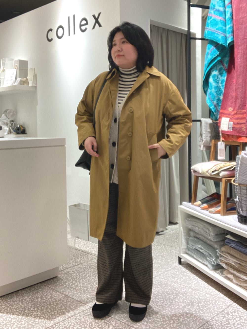 ゆったりカーディガンを中に着てます。 インナーダウンなしで カラーコートのみの着用です!
