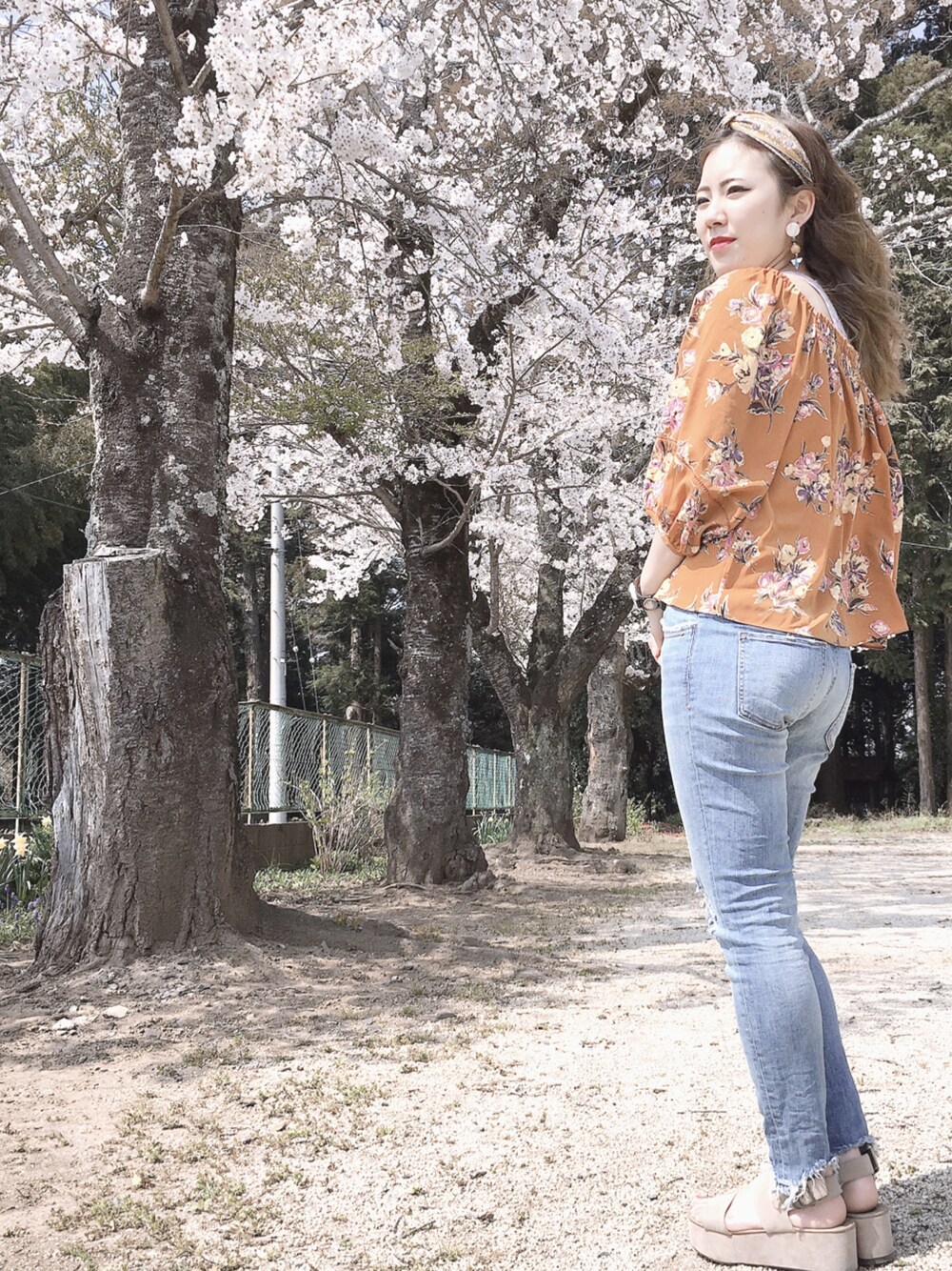 こんにちわ🌸 今年初のお花見気分を味わってます!! 身も心も春モード!!全開ですね♥ トップス、ヘアバンドを花柄で合わせてみました!!♪ やっぱり春は過ごしやすいので好きな季節No.1です◎ いつもいいね♥ありがとうございます。