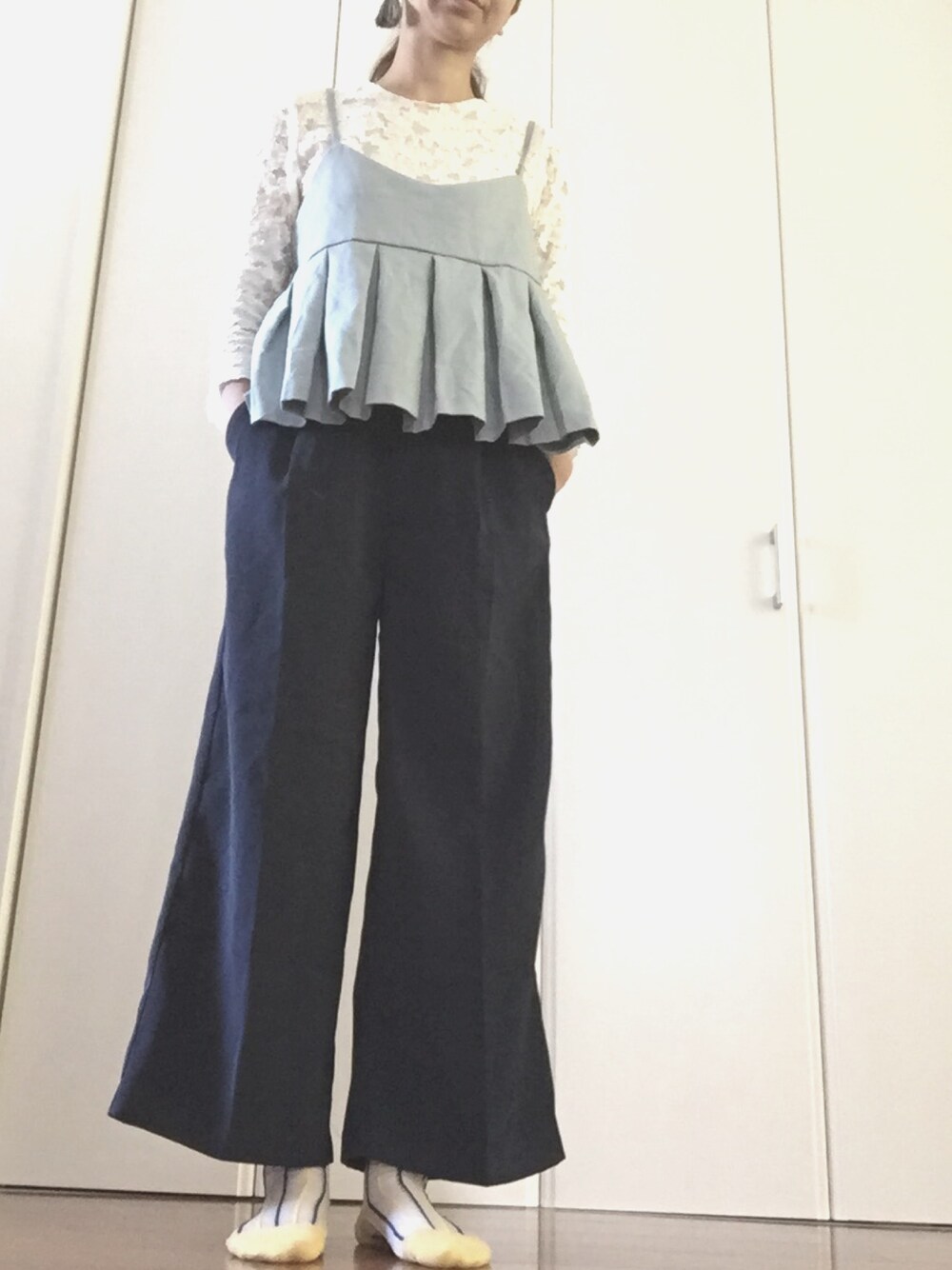 今日は女性らしく…。 トップスは袖がシースルーになって可愛いのでお気に入り