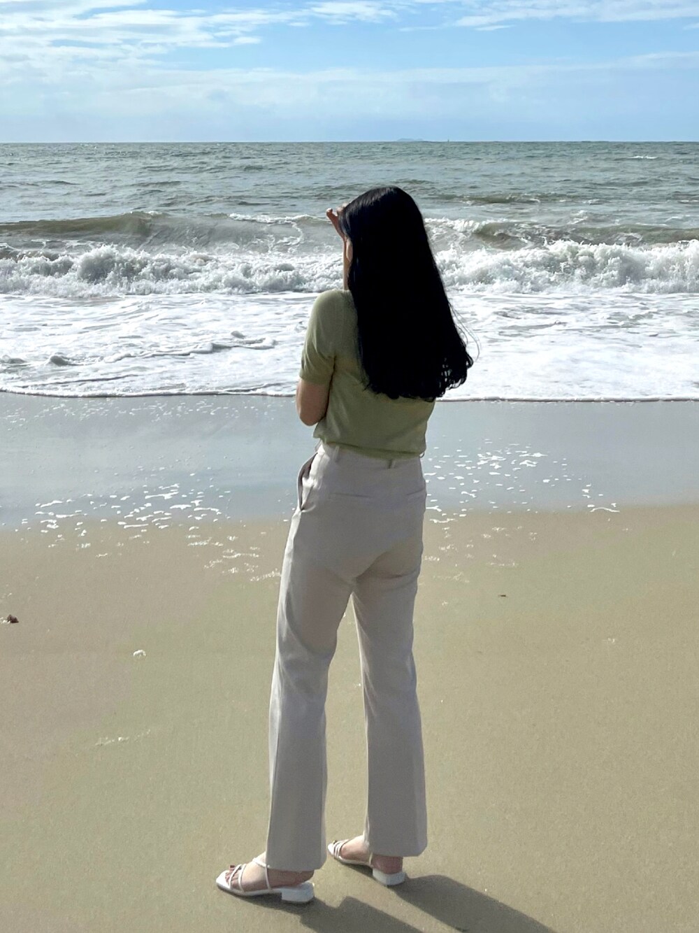 爽やかな感じ🌊?🌴 私は早く秋になって欲しいよ。。 このパンツめちゃくちゃ足がすらっと長く 見える気がして、お気に入り✔︎