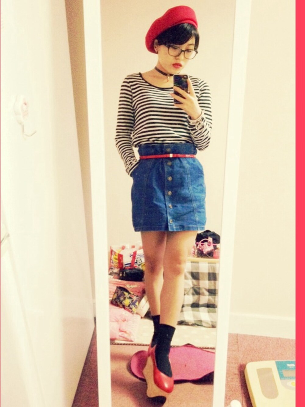 デニムスカート•靴:used