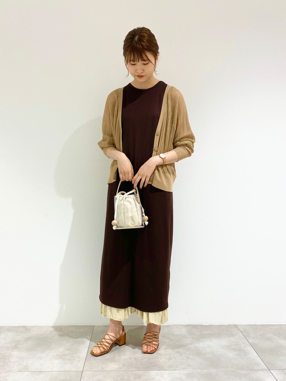 aのカーディガン/ボレロ「シアーリブニットカーディガン」を使ったコーディネート