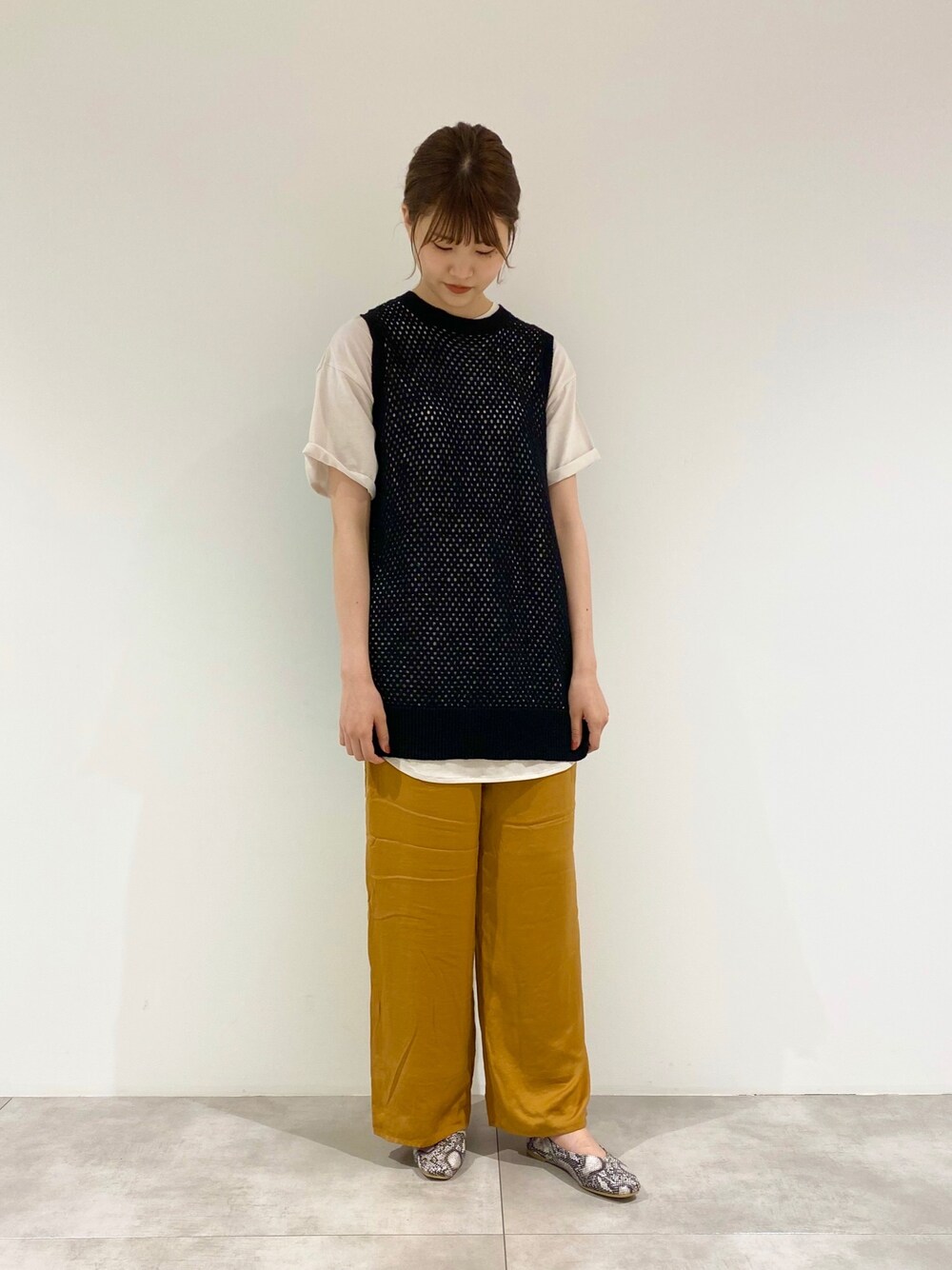 全体的にゆったりとしたシルエットなので 足元で少し抜け感を出してみました 🦋