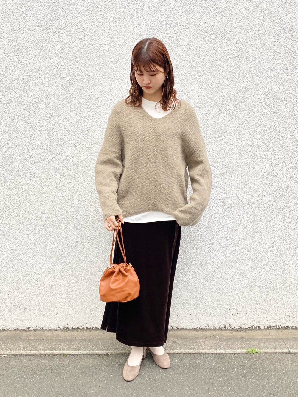 aのニット/セーター「アルパカVネックルーズコクーンセーター」を使ったコーディネート