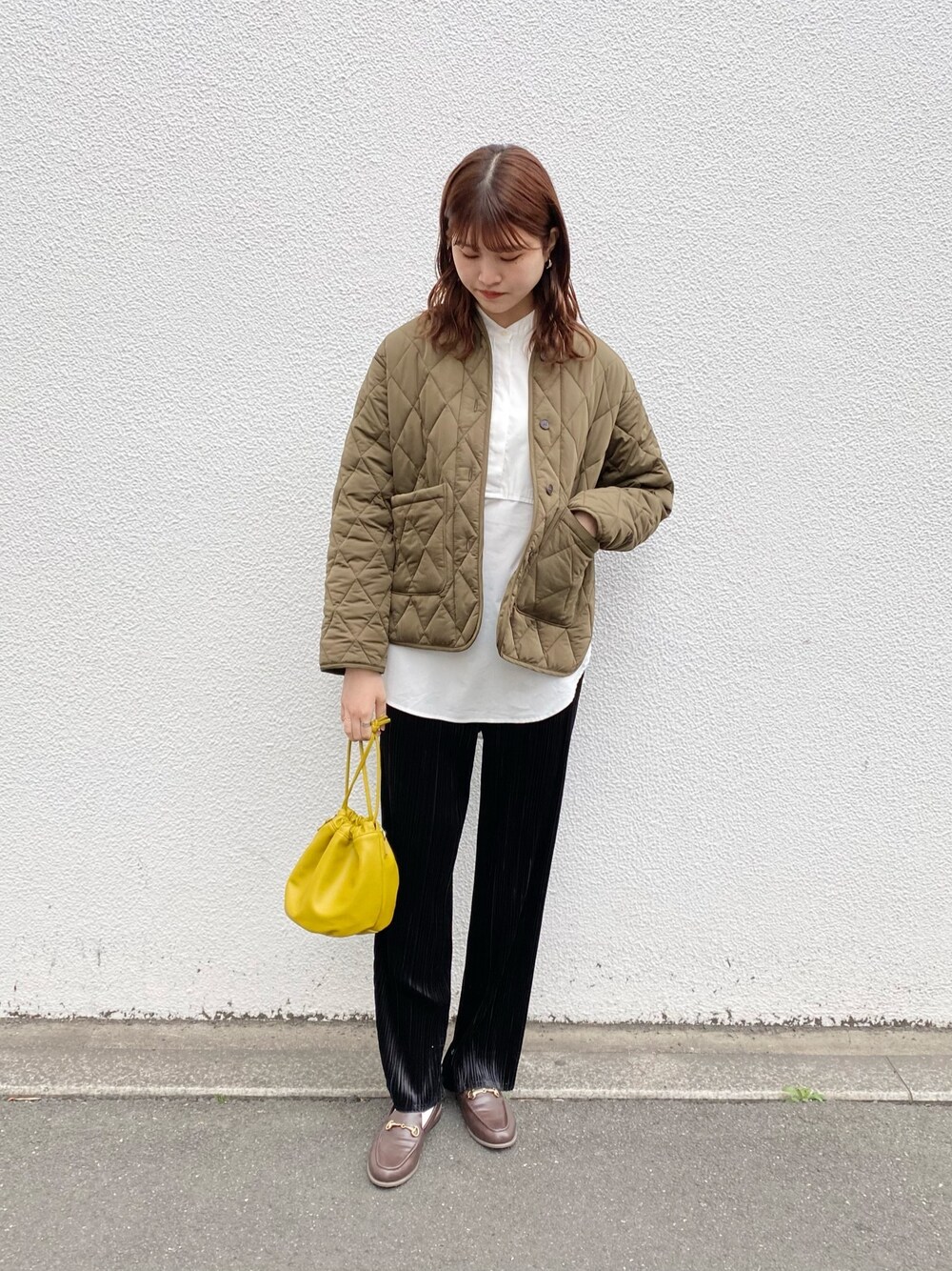 aのノーカラージャケット「キルティングショートコート」を使ったコーディネート