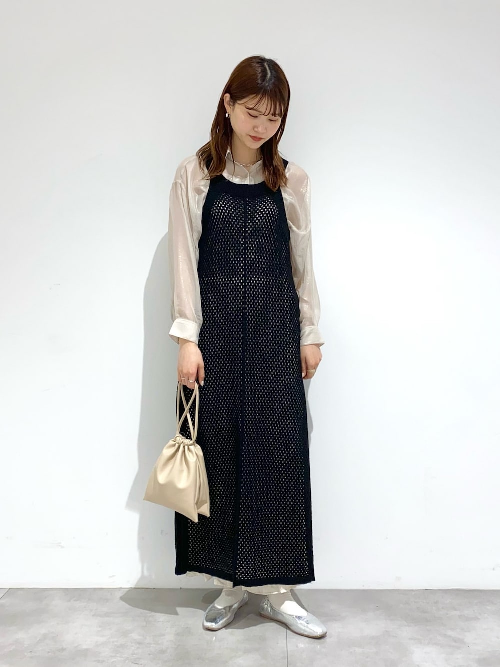 aのワンピース「アメスリロングメッシュトップ」を使ったコーディネート
