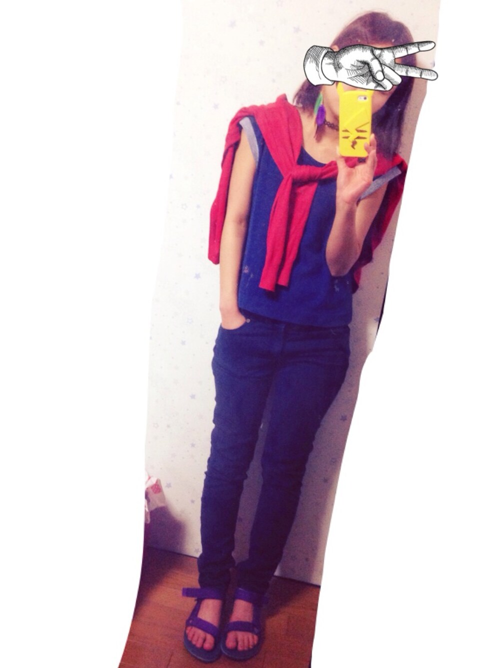 あえて上下デニム。 むしろminiの表紙のぱくり。。。 ピカチュウのiPhoneカバーが お気に入り〜⚡️