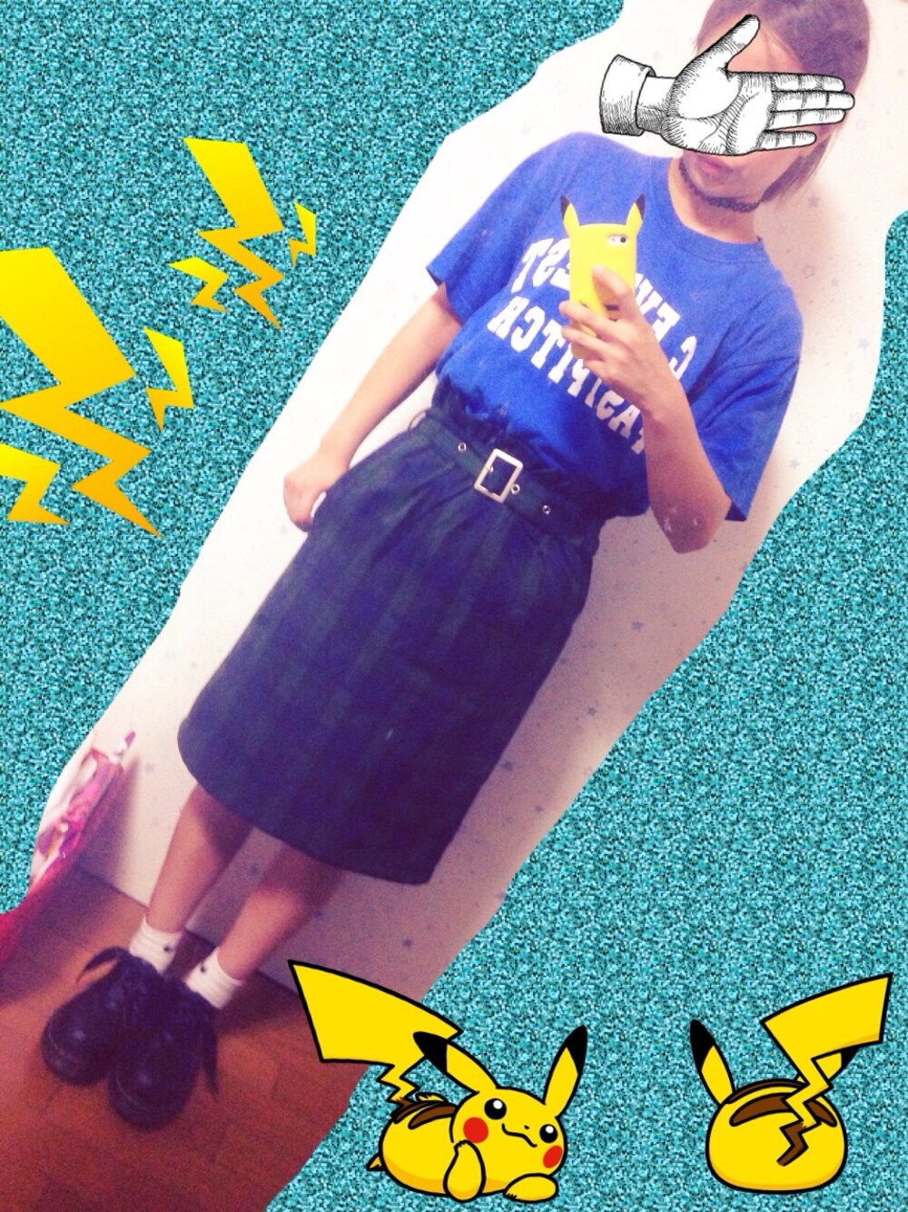 レトロガールのSALEで買った タイトスカートはきました。 ベルトがいいかんじ🙋