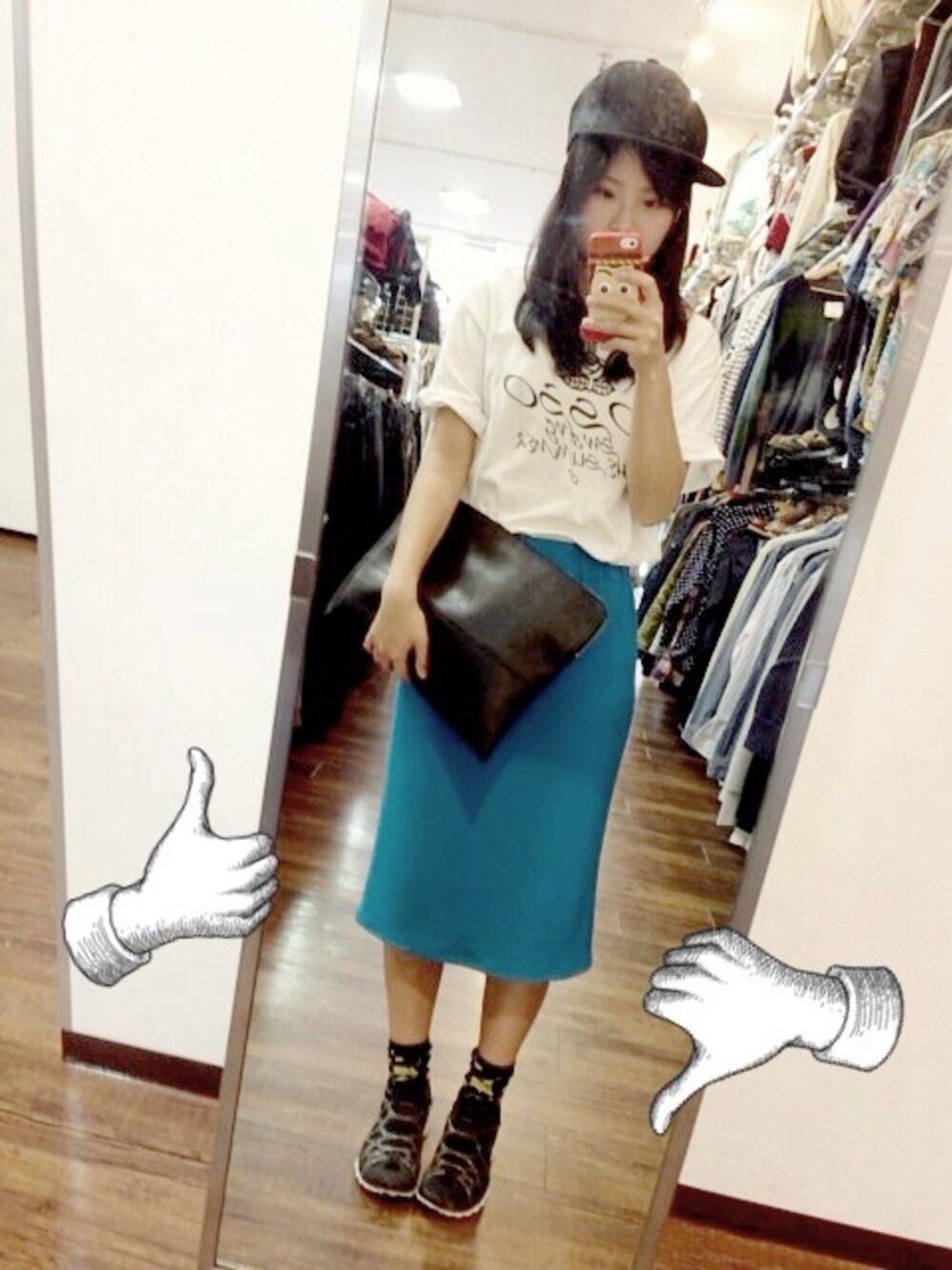 去年の夏のある日。 水色のペンシルスカートは 差し色によいかんじ。