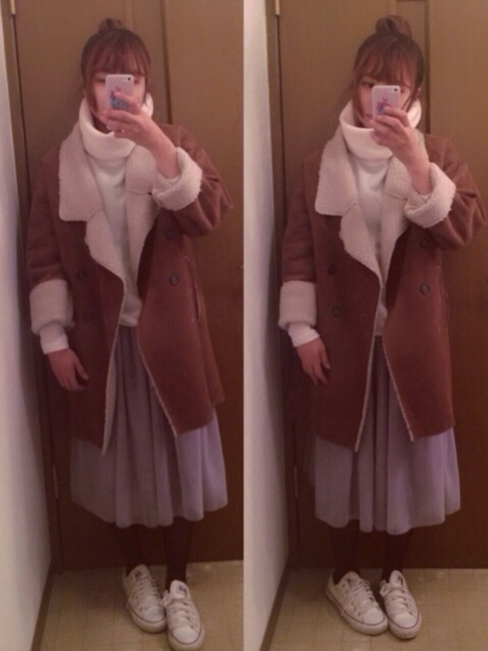 去年のKBFのムートンコート🐑🐑 グレーとブラウン買ったんやけど今年も飽きずに着れてよかった⛄️ 今年はまだ買ってなくてどれ買おうか迷い中、、💫💫 タートルネックあったかくてすき🙆