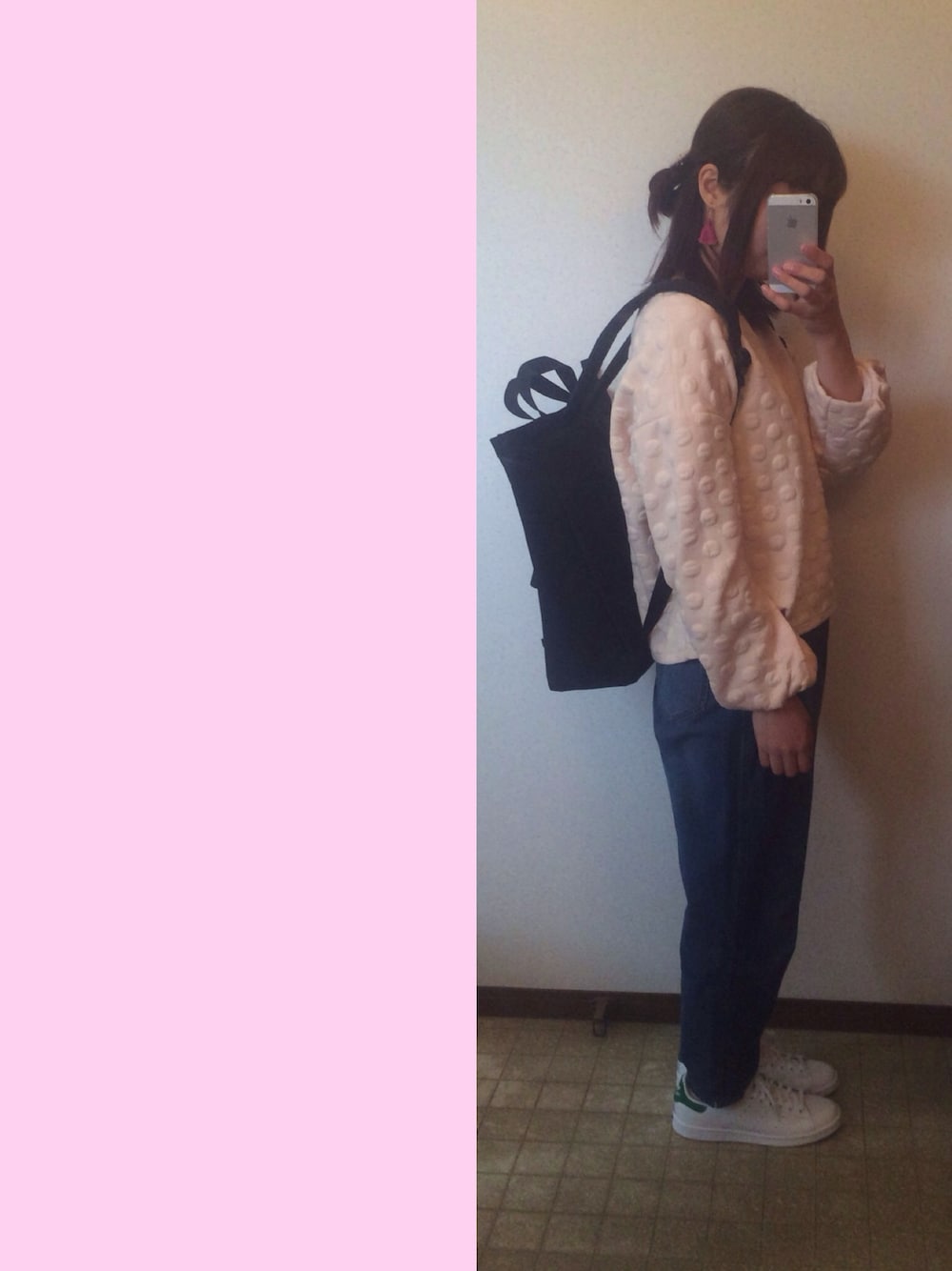 スタンスミス貰ったので 即履きました👟💕 このトップス袖が広がっているのと丸いところがプニプニしていてかわいいです💭 guのズボンはゆるっとしてて楽ですきです。薄い色のも買おうかな。 基本ゆるいものがすきです🐑🐑