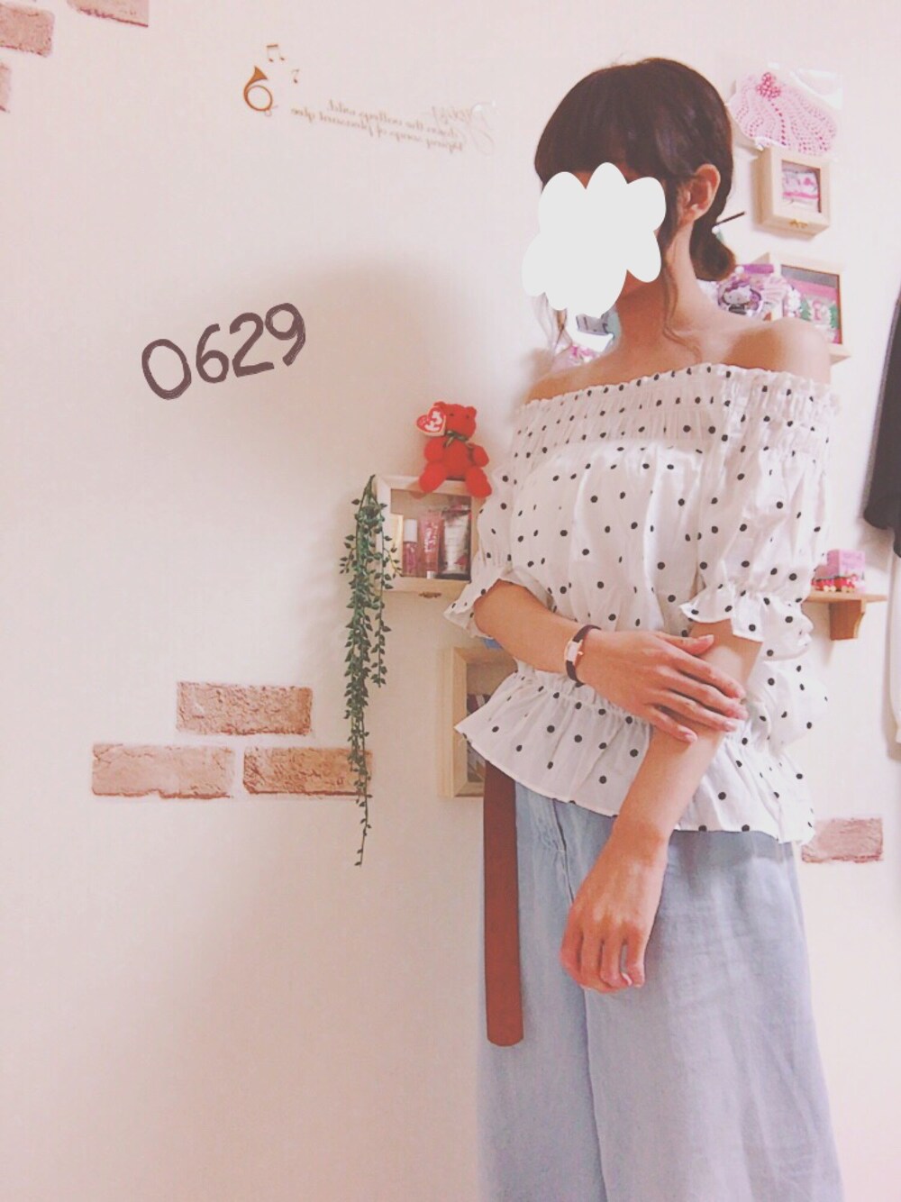 肩に自信ないからオフショルに抵抗あったけど 白くなるクリーム使えば無敵だ☺︎☺︎