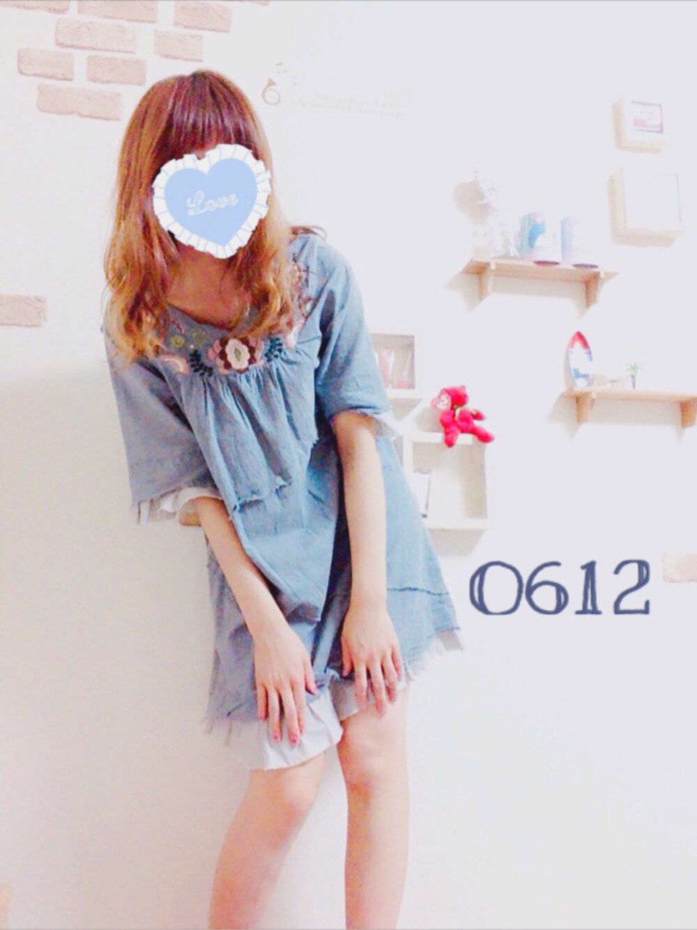 くすんだブルーが なんともいえず気に入ってます◎ 刺繍もかわいい〜✧ ✦ そしてそして、 ひさびさ短めにしてみました〜 夏は短め増えるかな☺︎♬ いまの梅雨の時期に ぴったりなコーデな気がします、
