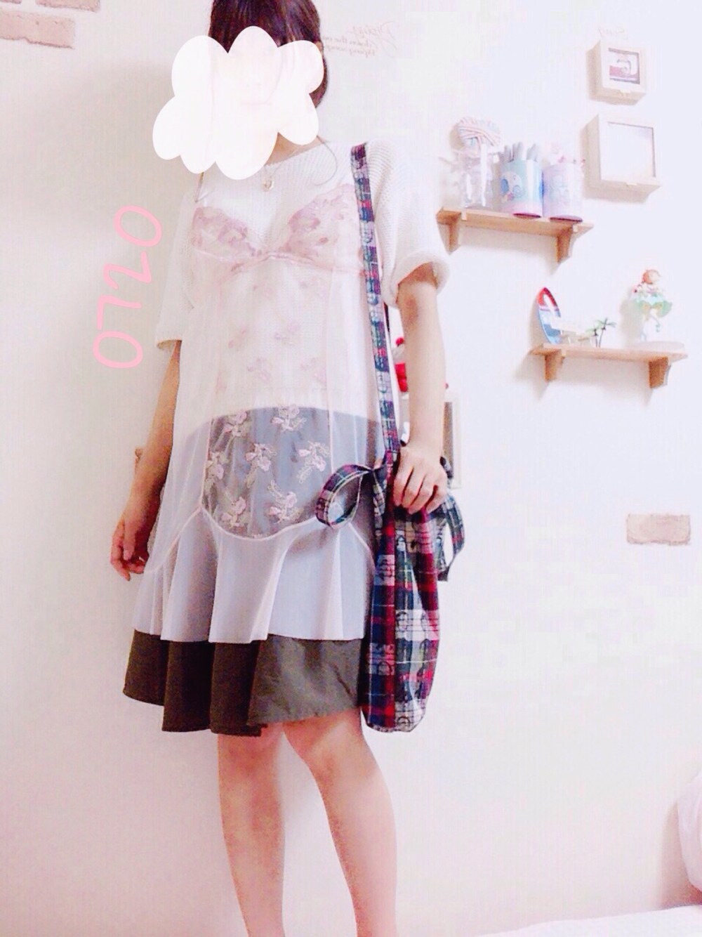 ひとめぼれして買ったキャミソール 透け感と刺繍の感じがお気に入りです◎ あとは親からのおさがりとしまむらで なんとなーくまとめてみました、笑 バッグはASOKOのです♩