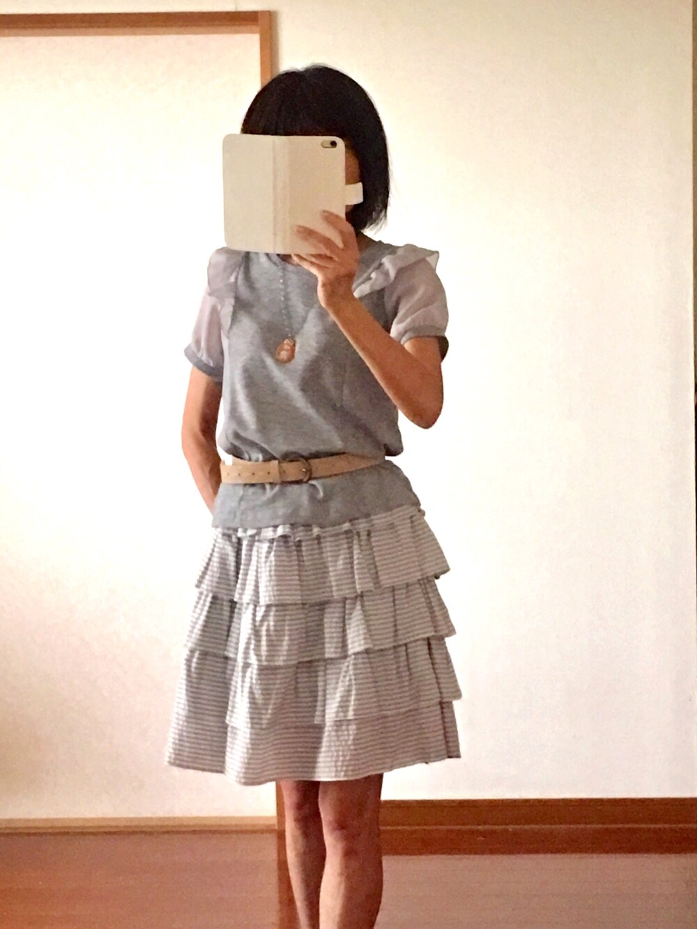 ネ・ネットの段々スカートは可愛いけれど落ち着いた色なのでオトナ女子にぴったり! と、言いながらネックレスは スイマーで見つけた子ども用アクセ(*´∇`*) うさちゃんがついてます♫