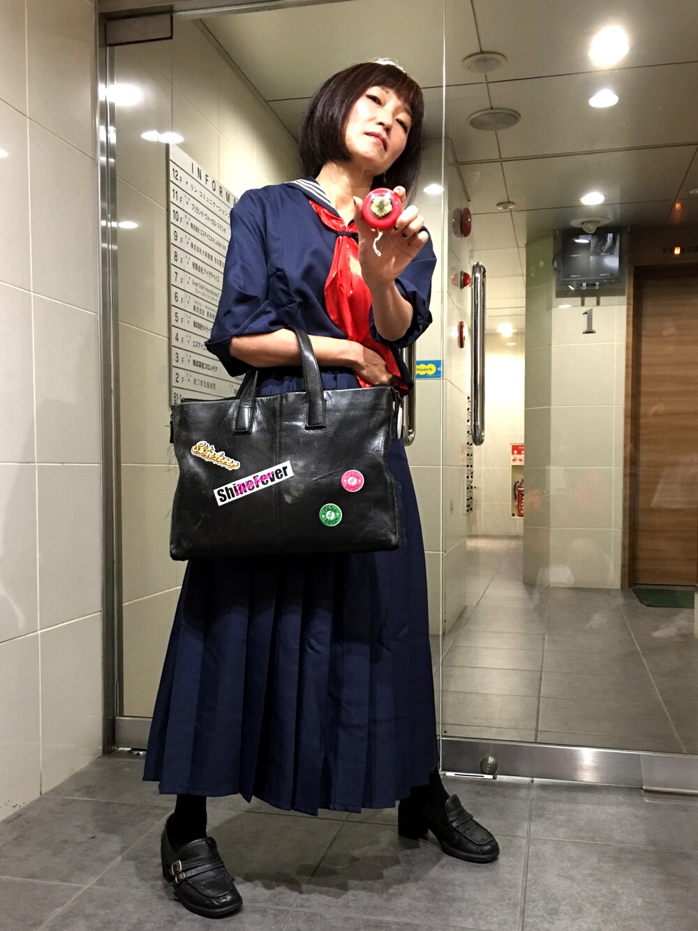 80年代コスプレのハロウィンパーティー🎃 スケバンなので迫力ある表情、頑張ってますっ‼️ 4代目 名古屋出身スケバン刑事 ガラ悪すぎてオンエアならず〜。ってコンセプトです。 「あんたら、許さんでね〜。焼きそばパン買ってこやぁ!」←決めゼリフ カバンに貼ったのはShine 4everのオリジナルステッカーだよ! 楽しかったヽ(´▽`)/🍒