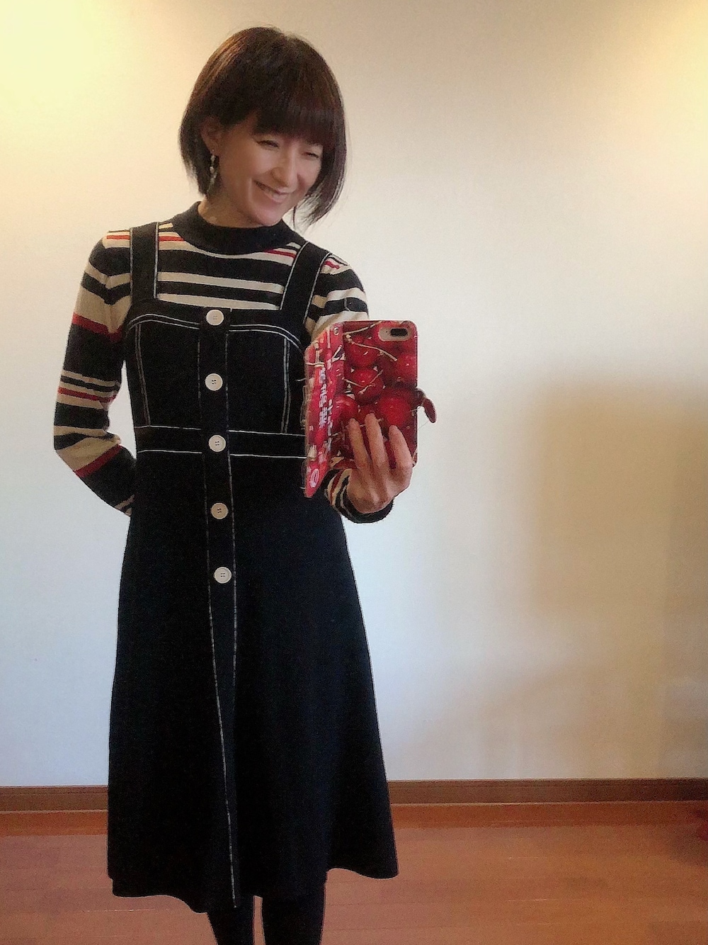 まだまだ寒いから ニットのセーターにニットのジャンスカ♫ セーターは昔買ったセットアップのトップス スカートは量り売りの古着屋さんで発見! 試着できなかったけど ジャストサイズでラッキー⭐️