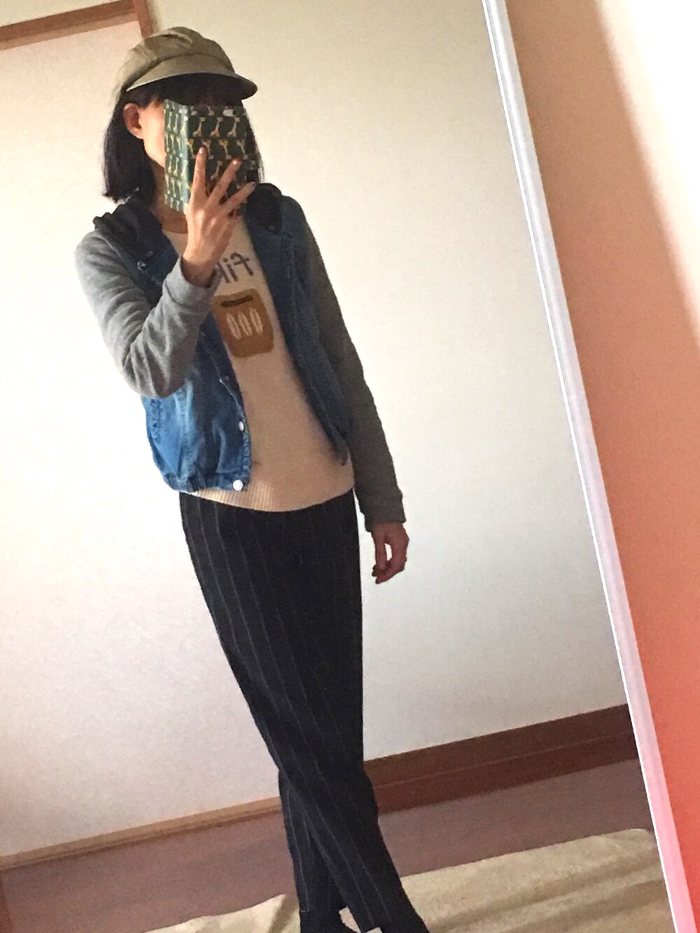 デニム以外のロングパンツは滅多に着ないけど、少年ぽいコーデは好きです♡帽子も好き♡