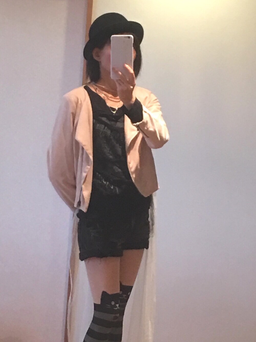 2つ前のワンピと一緒に買ったジャケットは、後ろにチュールの尾ビレwwがついています。ハードな服装をちょっと女のコ寄りにしてくれてます♡ ネコタイツもね♡
